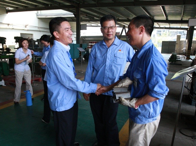 7月25日,集團(tuán)黨委書記潘秋友、總部黨委書記陸冬云和所屬支部書記頂著烈日,帶著全體黨員的心意,先后來(lái)到白南山留守組、馬目園區(qū)各工廠和部門,將一箱箱加多寶、鹽汽水送到員工手中,向他們道一聲:“你們辛苦了,注意防暑降溫!”